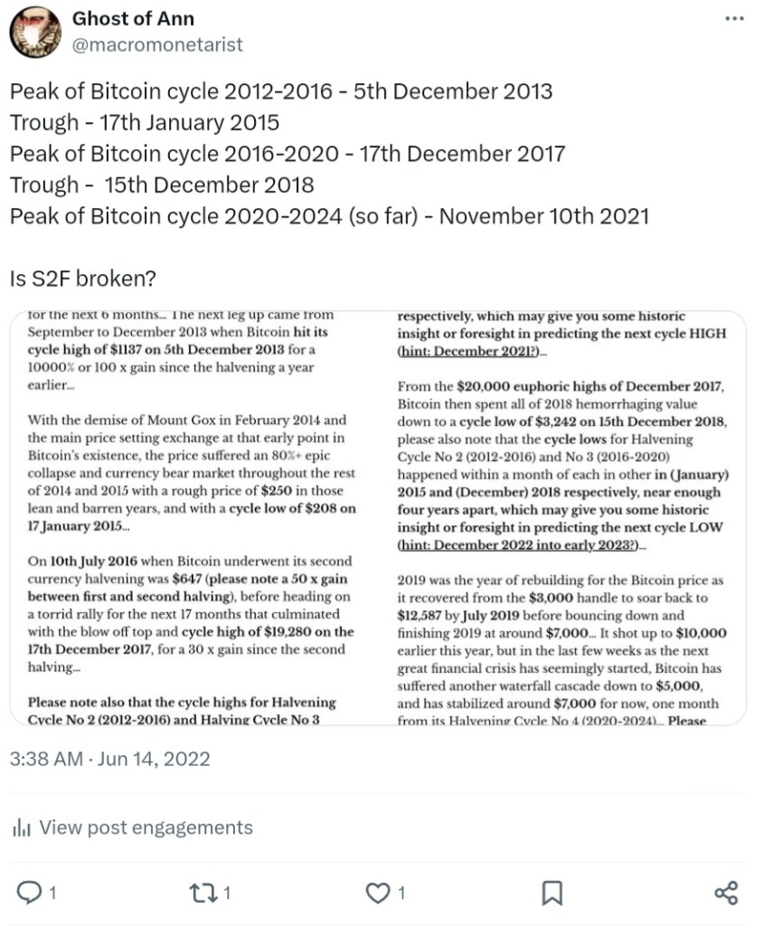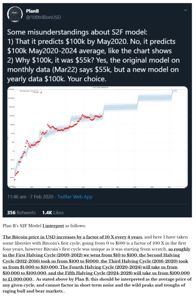I spent a lot of the 2020 Halving Post discussing Plan B’s modelling and charts, which can be read there.