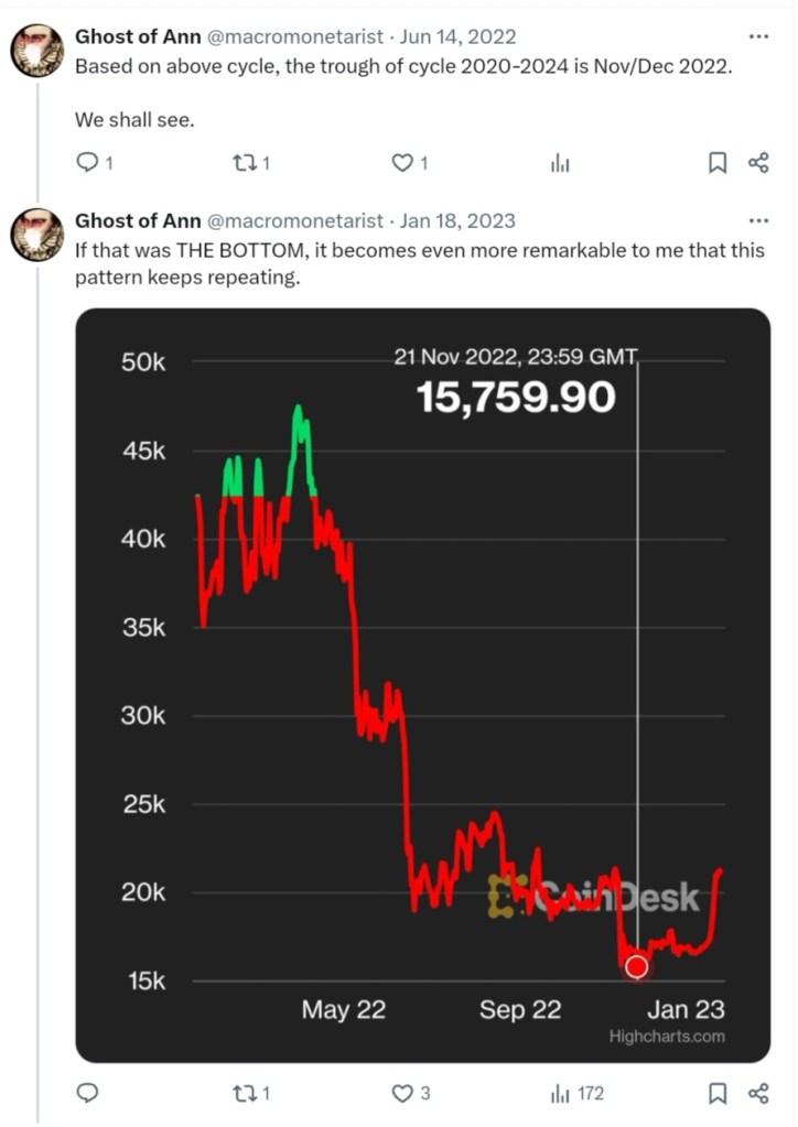 | Cycle Low Price | $50,000 | $16,000 | Comical Miss! | December 2022 | November 2022 | Hit! |