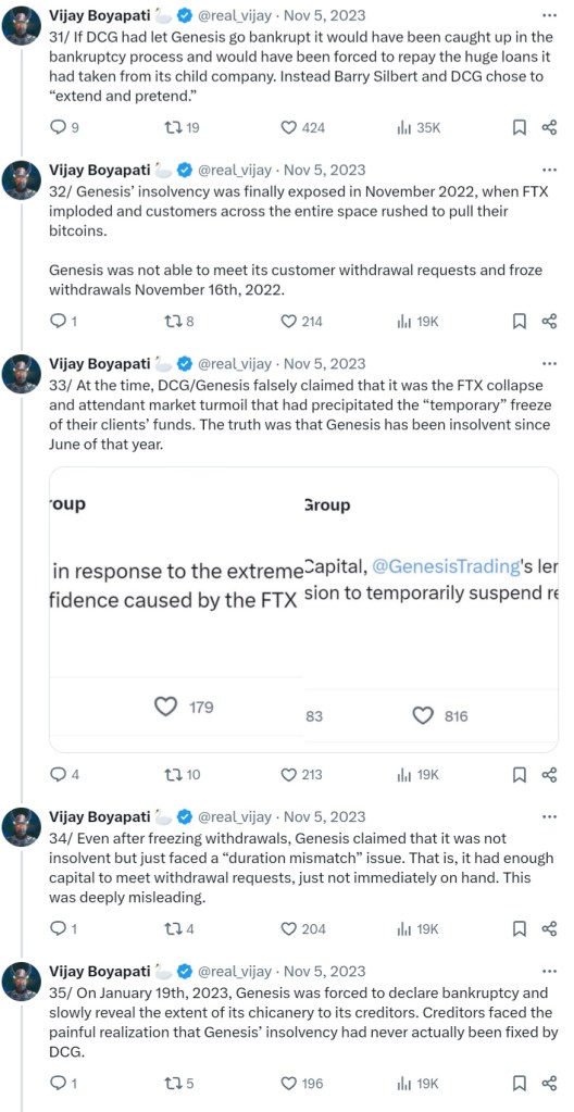 The bankruptcy of Bankman-Fried’s FTX and Bitcoin price bottom co-incided in November 2022, and in January 2023 Genesis declared bankruptcy.