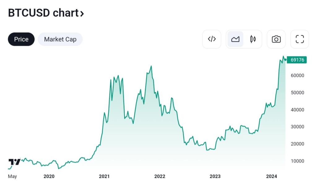In keeping with the economic measurements above, and to bring things up to date, at the time of writing in early April 2024, Bitcoin is currently trading at around $65,000 and its market cap is $1.3 Trillion, so straight away we can see that Bitcoin is 10X higher in stock and flow than four years ago.