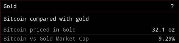 Latest Bitcoin to gold exchange and market cap, courtesy of Clark Moody’s Bitcoin Dashboard
