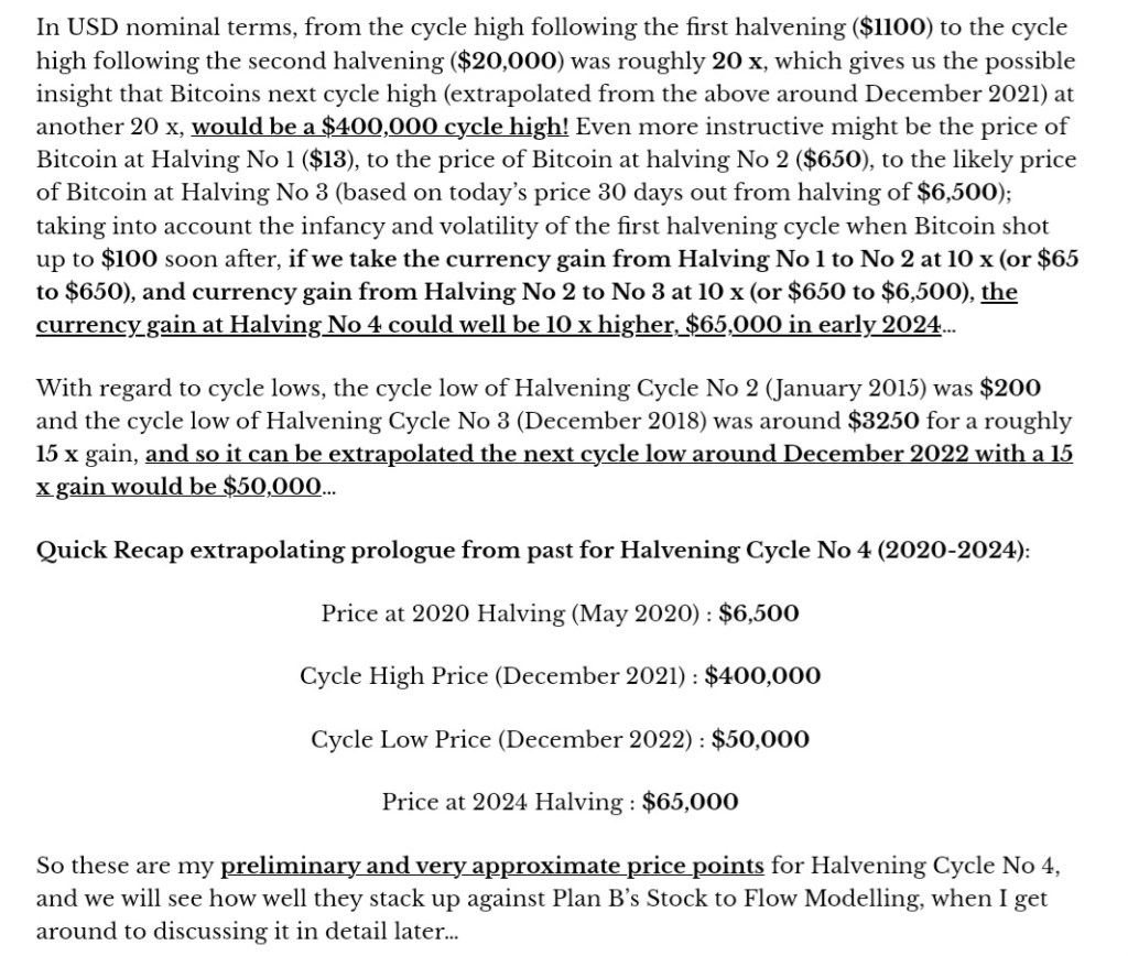 “The Bitcoin price in USD increases by a factor of 10X every four years” – flashback to the 2020 post