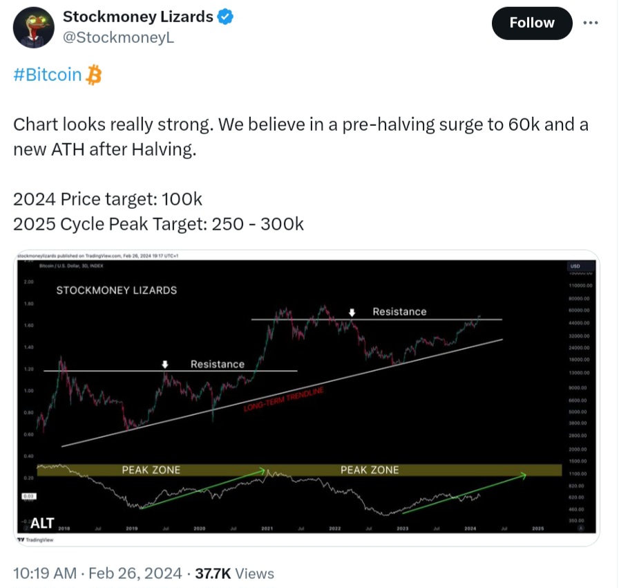 An interesting tweet thread I came across with price targets between $150,000 and $275,000 (source)