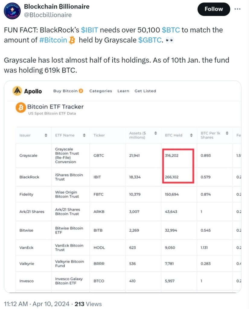 After dominating Bitcoin equity in the TradFi space for a decade, Grayscale Bitcoin Trust has bled over 300,000 bitcoins in three months! The Wolves of Wall Street are tearing it apart! (source)