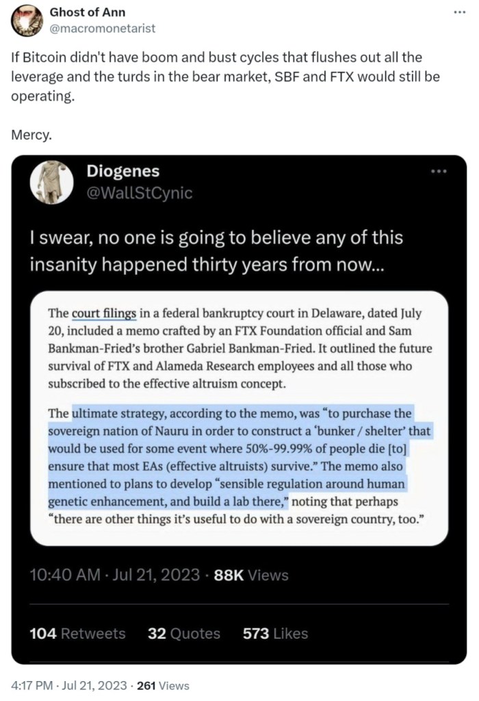 A thorough and excellent thread on the shenanigans going on in Bitcoin’s exchange ecosystem in the Bull Market of 2021 and Bear Market of 2022 (source)