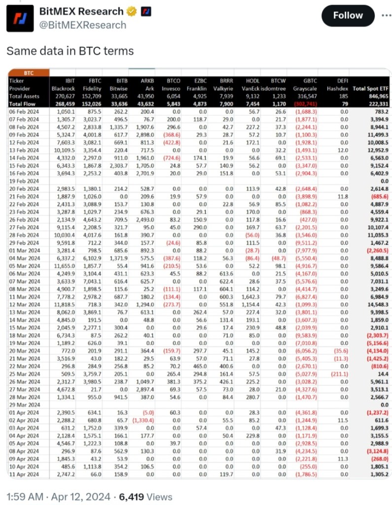 A reminder of just how much bitcoins the US ETF’s are gobbling up, thousands per day (source)