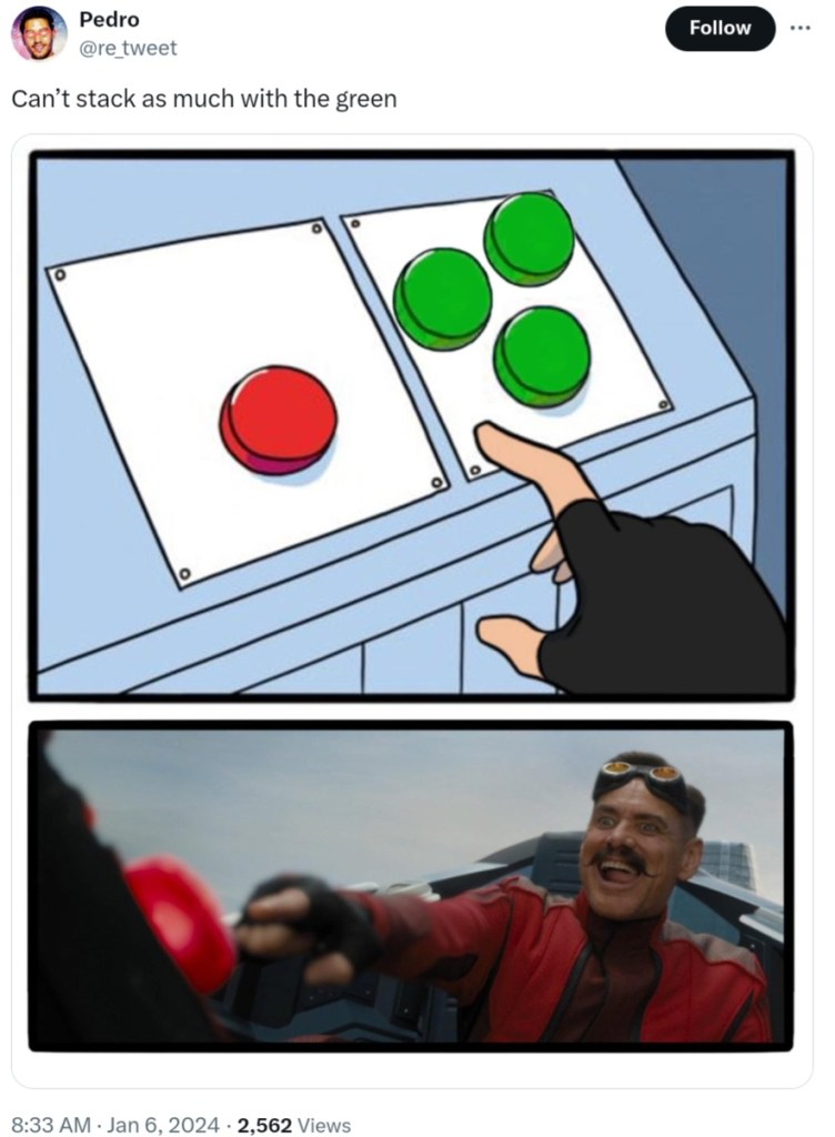 A recent meme within Bitcoin Twitter: three green years followed by one red. The patterns they keep repeating!