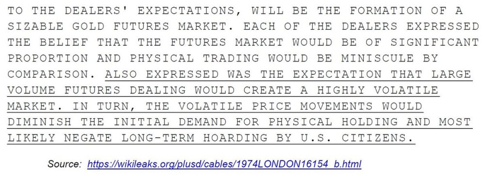 An old favourite that has been included in many of my past posts – Wikileaks 1974 Cable Reveals Purpose of Creation of Gold Futures Market (H/T Smaulgld)